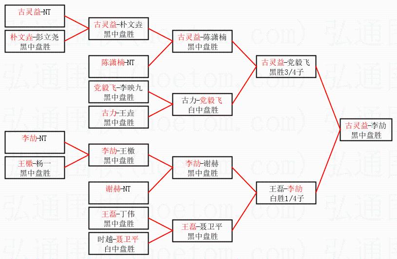 1.古灵益获得冠军,李劼获得亚军。决赛比分:古灵益1:0李劼。棋局: