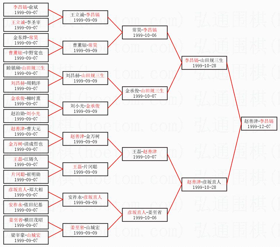 | 1.李昌镐获得冠军,赵善津获得亚军。决赛比分:李昌镐3:0赵善津。棋局: | ||