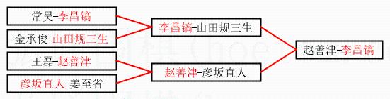 | 1.李昌镐获得冠军,赵善津获得亚军。决赛比分:李昌镐3:0赵善津。棋局: | ||