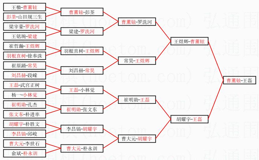 2.上半区半决赛曹薰铉获胜, 比分:曹薰铉 2:0 王煜辉。棋局:
