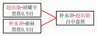2.上半区半决赛赵治勋获胜, 比分:赵治勋 2:0 胡耀宇。棋局: