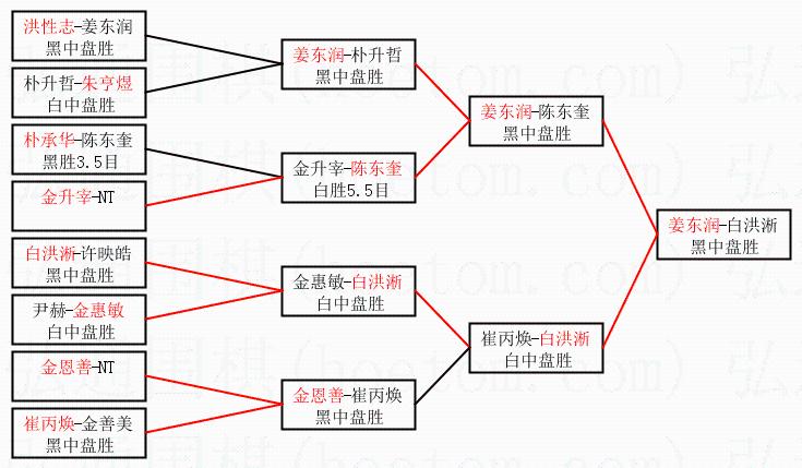 1.姜东润获得冠军,白洪淅获得亚军。决赛比分:姜东润2:0白洪淅。棋局: