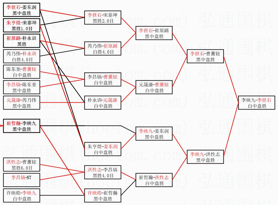 1.李世石获得冠军,李映九获得亚军。决赛比分:李世石2:1李映九。棋局: