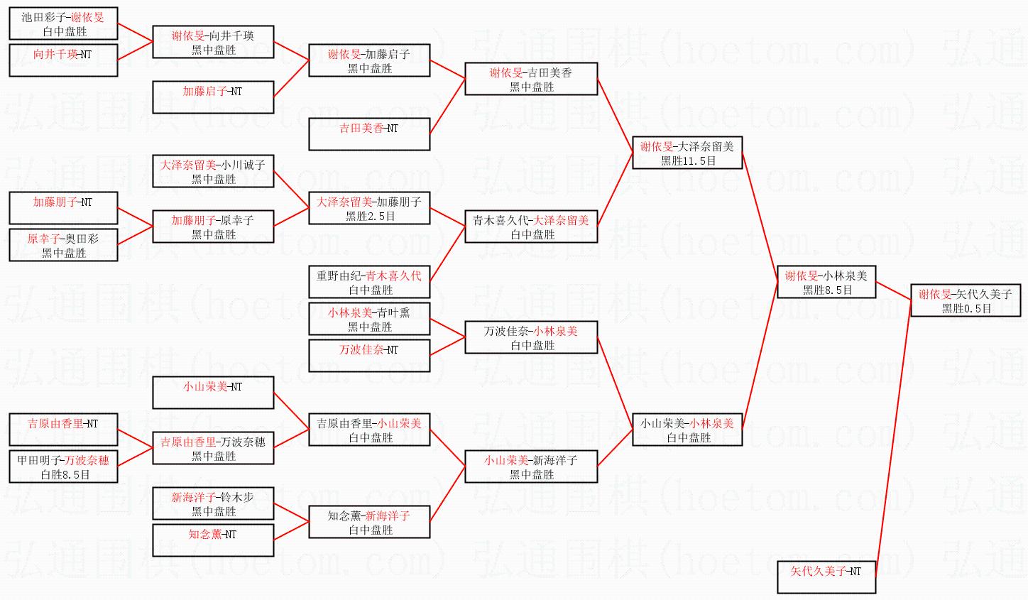 2.上半区半决赛谢依旻获胜, 比分:谢依旻 1:0 小林泉美。棋局: