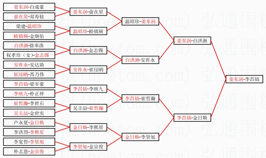1.姜东润获得冠军,李昌镐获得亚军。决赛比分:姜东润2:1李昌镐。棋局:
