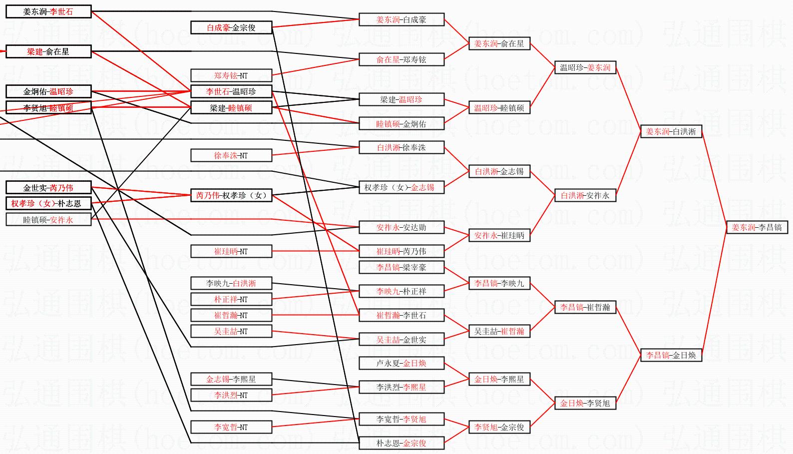 1.姜东润获得冠军,李昌镐获得亚军。决赛比分:姜东润2:1李昌镐。棋局: