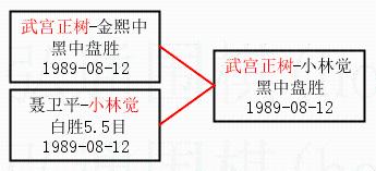 2.上半区半决赛武宫正树获胜, 比分:武宫正树 1:0 金熙中。棋局: