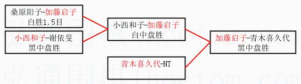 2.上半区半决赛加藤启子获胜, 比分:加藤启子 1:0 小西和子。棋局: