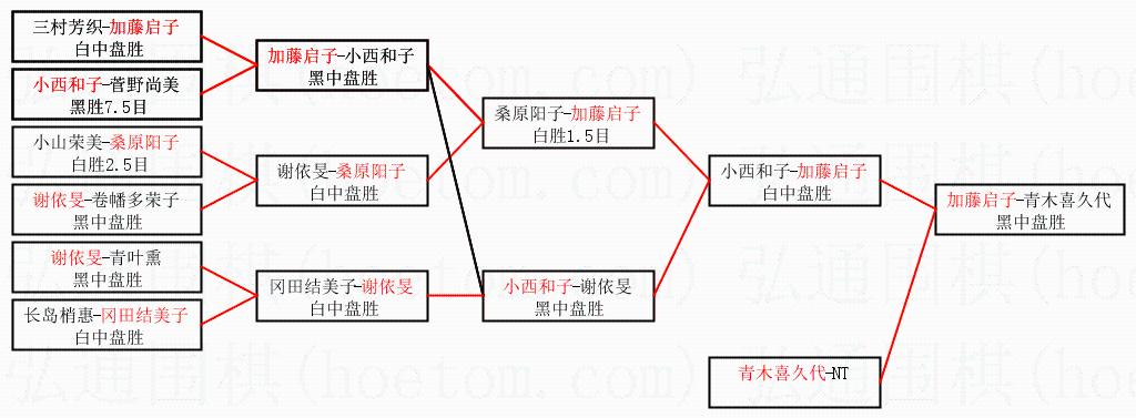 | 1.加藤启子获得冠军,青木喜久代获得亚军。决赛比分:加藤启子2:1青木喜久代。棋局: | ||