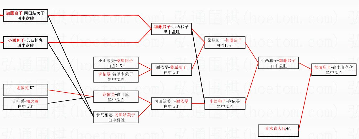 | 1.加藤启子获得冠军,青木喜久代获得亚军。决赛比分:加藤启子2:1青木喜久代。棋局: | ||