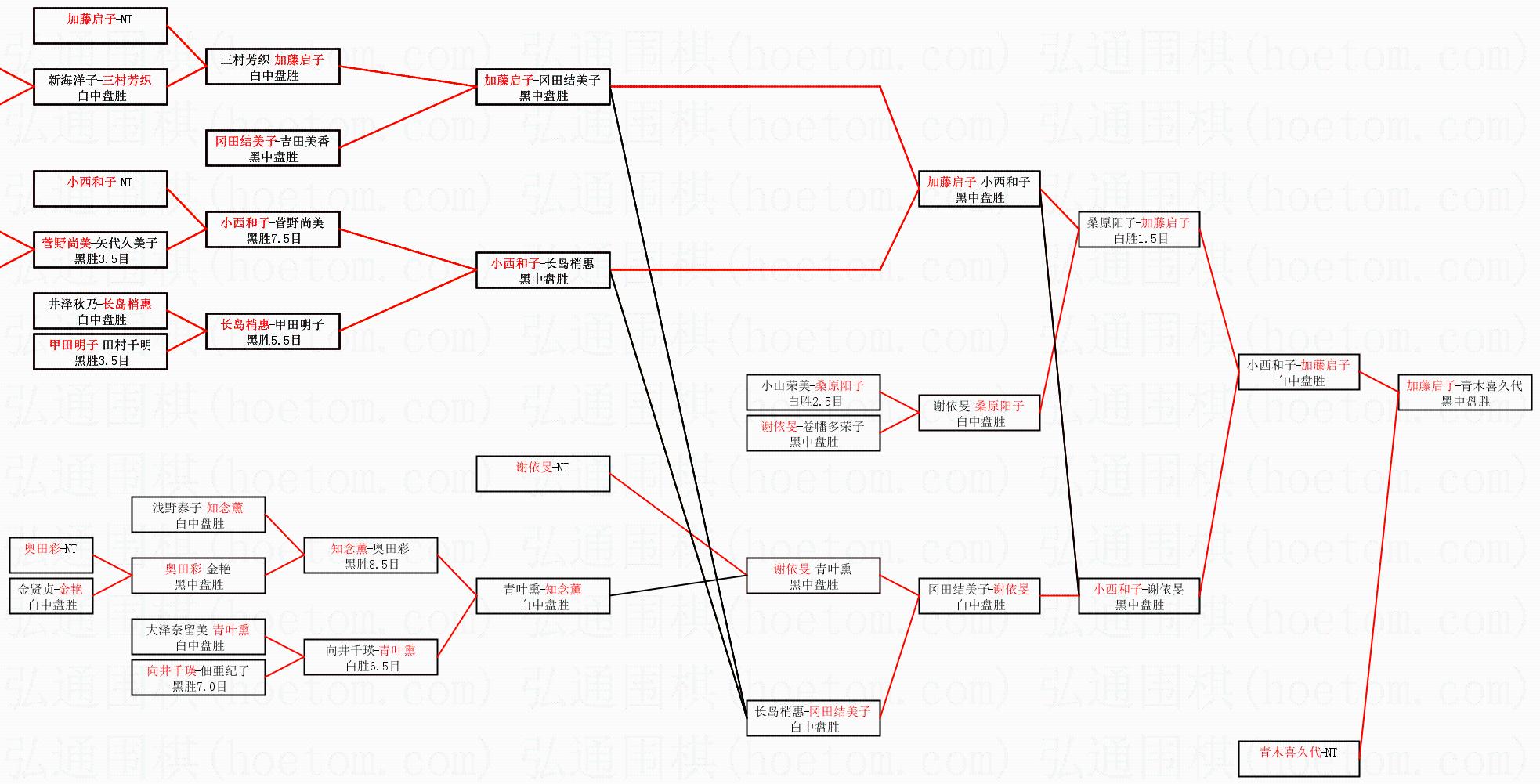 | 1.加藤启子获得冠军,青木喜久代获得亚军。决赛比分:加藤启子2:1青木喜久代。棋局: | ||