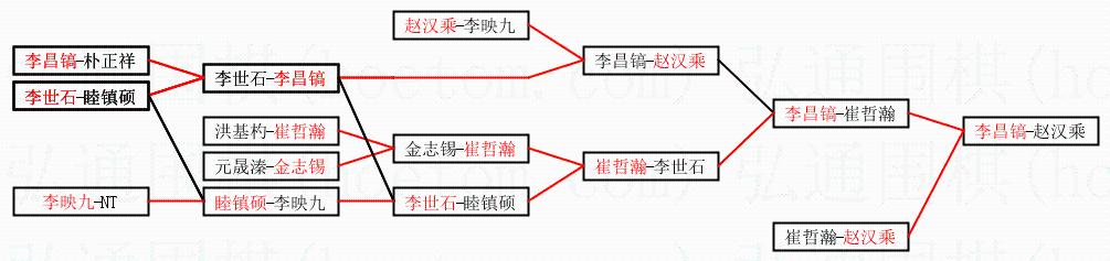 | 2.上半区半决赛李昌镐获胜, 比分:李昌镐 1:0 崔哲瀚。棋局: | ||