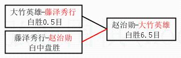 | 2.上半区半决赛藤泽秀行获胜, 比分:藤泽秀行 1:0 大竹英雄。棋局: | ||
