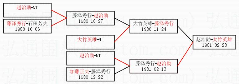 3.下半区半决赛赵治勋获胜,比分:赵治勋1:0藤泽秀行。棋局: