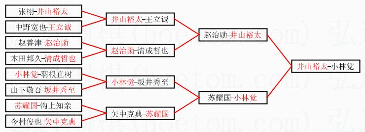 1.井山裕太获得冠军,小林觉获得亚军。决赛比分:井山裕太1:0小林觉。棋局: