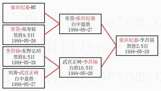 3.下半区半决赛李昌镐获胜,比分:李昌镐1:0武宫正树。棋局: