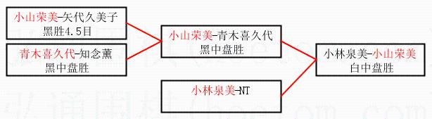 1.小山荣美获得冠军,小林泉美获得亚军。决赛比分:小山荣美2:1小林泉美。棋局: