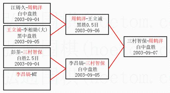 3.下半区半决赛三村智保获胜,比分:三村智保1:0李昌镐。棋局:
