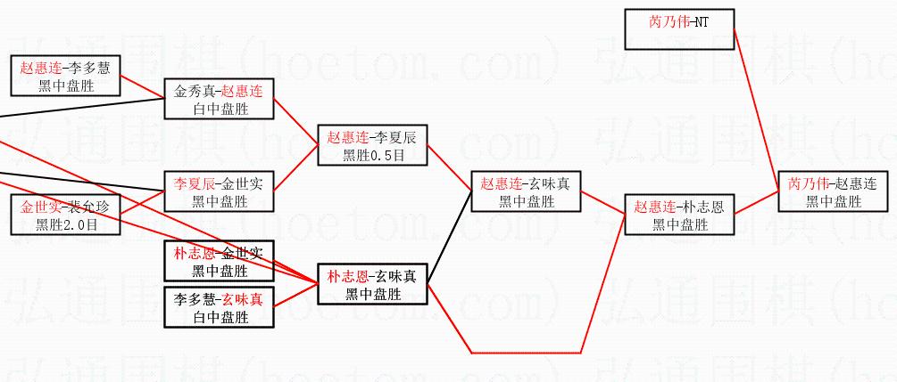 3.下半区半决赛赵惠连获胜,比分:赵惠连1:0朴志恩。棋局: