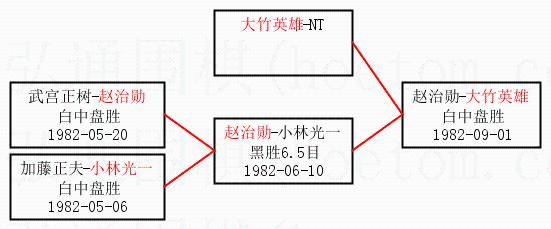 3.下半区半决赛赵治勋获胜,比分:赵治勋2:0小林光一。棋局: