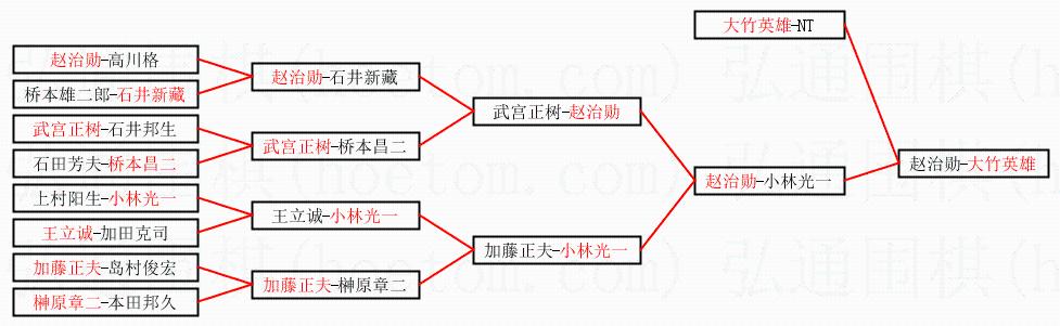 3.下半区半决赛赵治勋获胜,比分:赵治勋2:0小林光一。棋局: