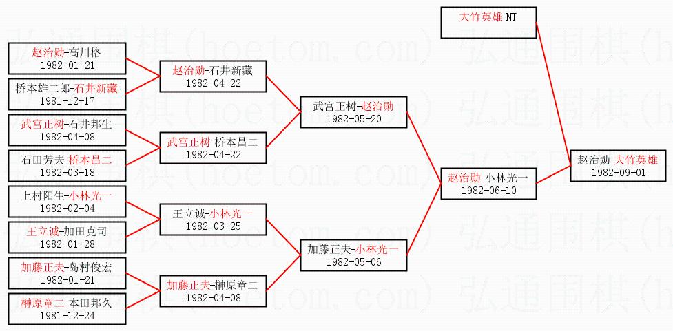1.大竹英雄获得冠军,赵治勋获得亚军。决赛比分:大竹英雄3:2赵治勋。棋局: