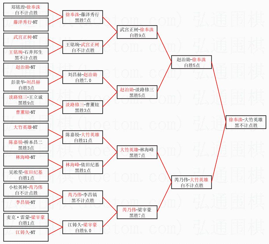 1.徐奉洙获得冠军,大竹英雄获得亚军。决赛比分:徐奉洙3:2大竹英雄。棋局: