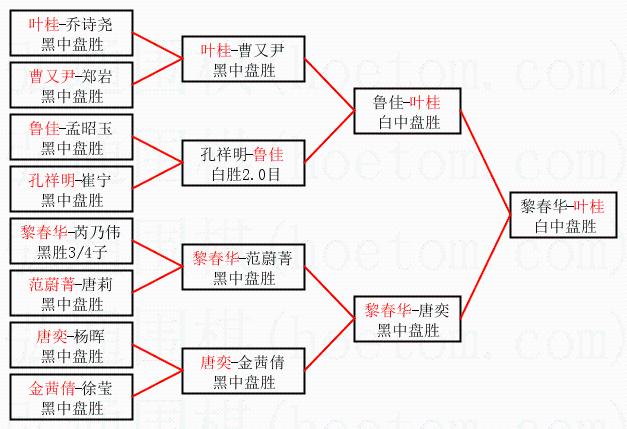 1.叶桂获得冠军,黎春华获得亚军。决赛比分:叶桂2:0黎春华。棋局: