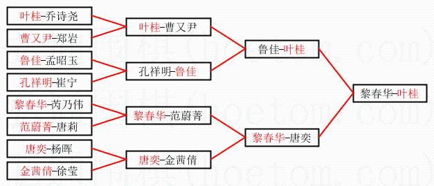 1.叶桂获得冠军,黎春华获得亚军。决赛比分:叶桂2:0黎春华。棋局: