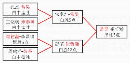 2.上半区半决赛常昊获胜, 比分:常昊 2:1 宋泰坤。棋局: