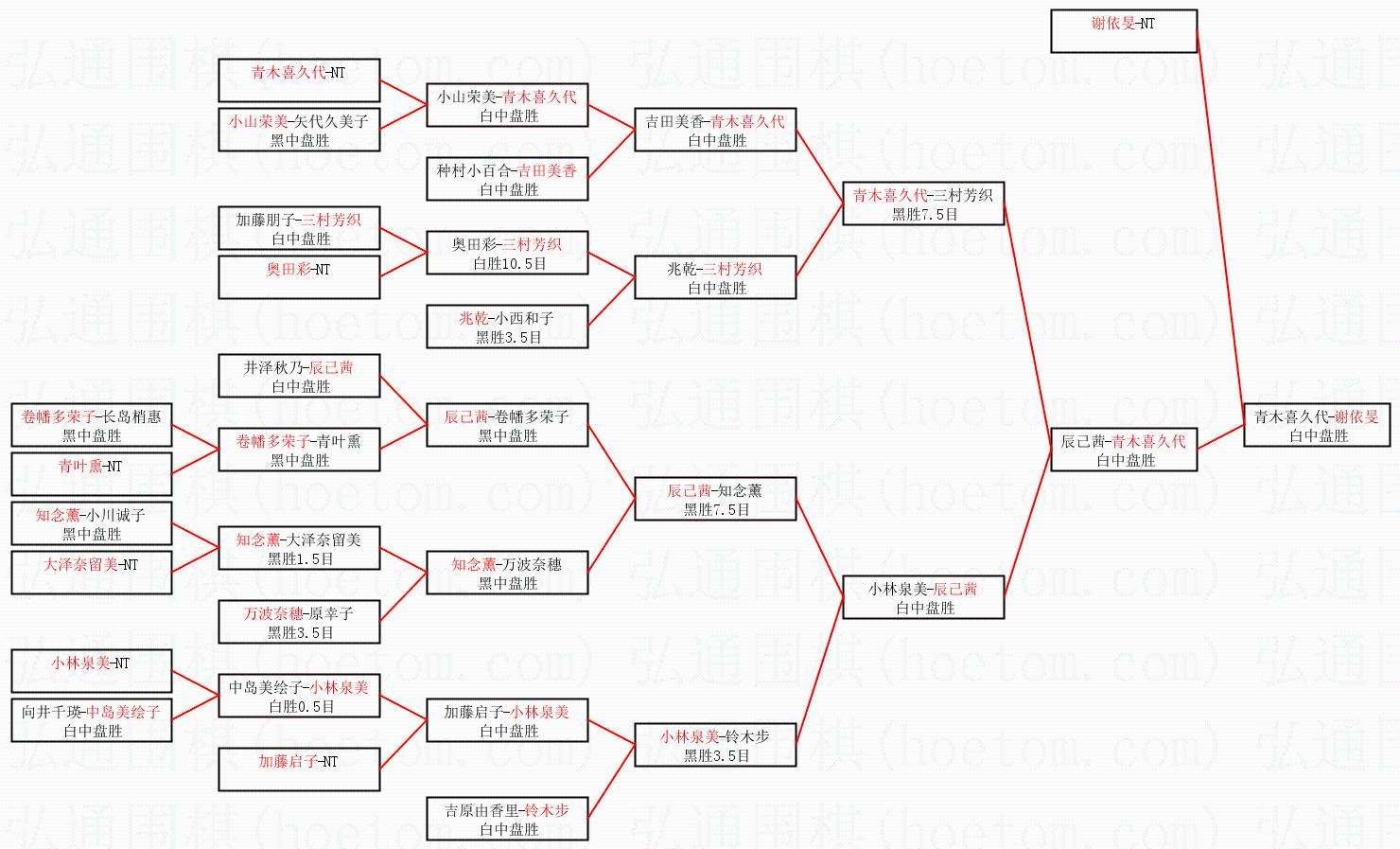 | 1.谢依旻获得冠军,青木喜久代获得亚军。决赛比分:谢依旻3:1青木喜久代。棋局: | ||