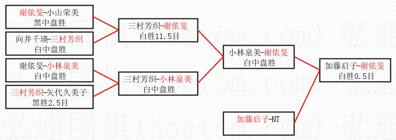 1.谢依旻获得冠军,加藤启子获得亚军。决赛比分:谢依旻2:0加藤启子。棋局: