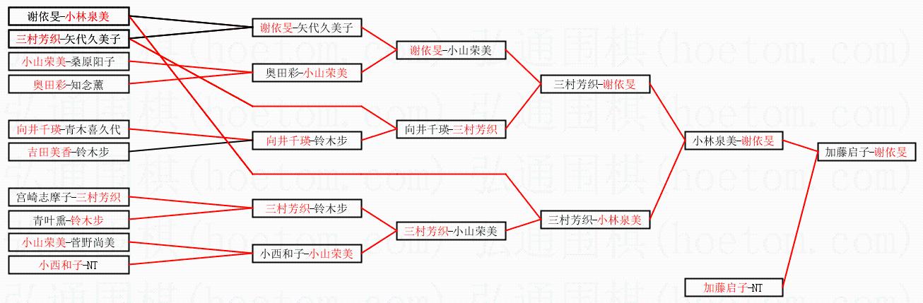 1.谢依旻获得冠军,加藤启子获得亚军。决赛比分:谢依旻2:0加藤启子。棋局: