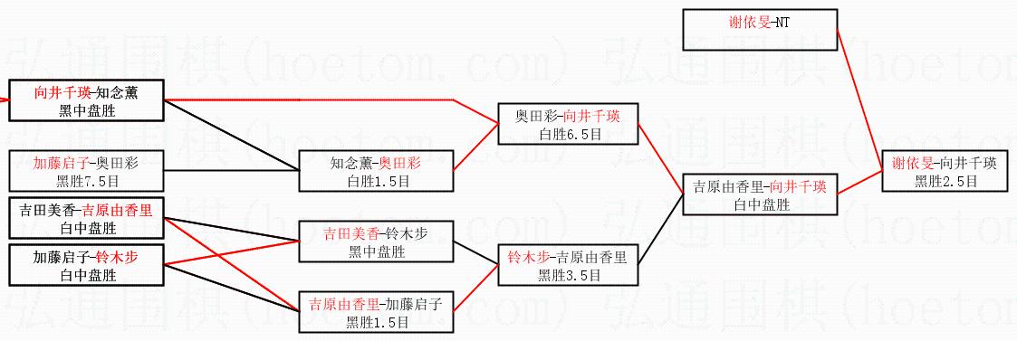 1.谢依旻获得冠军,向井千瑛获得亚军。决赛比分:谢依旻2:0向井千瑛。棋局: