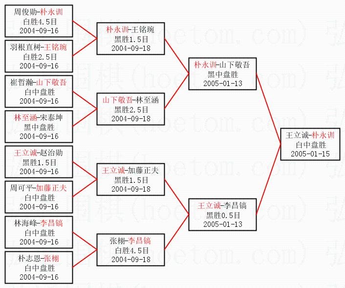 1.朴永训获得冠军,王立诚获得亚军。决赛比分:朴永训1:0王立诚。棋局: