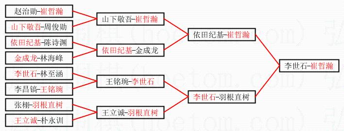 1.崔哲瀚获得冠军,李世石获得亚军。决赛比分:崔哲瀚1:0李世石。棋局: