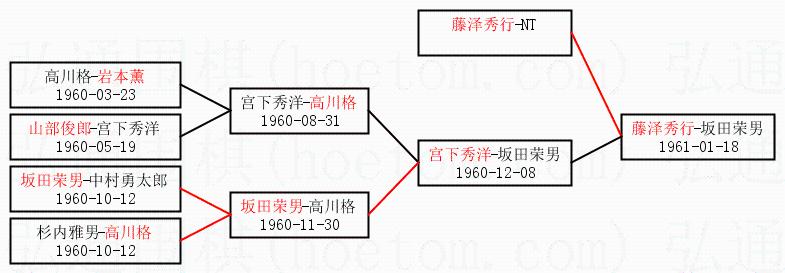 1.藤泽秀行获得冠军,坂田荣男获得亚军。决赛比分:藤泽秀行1:2坂田荣男。棋局: