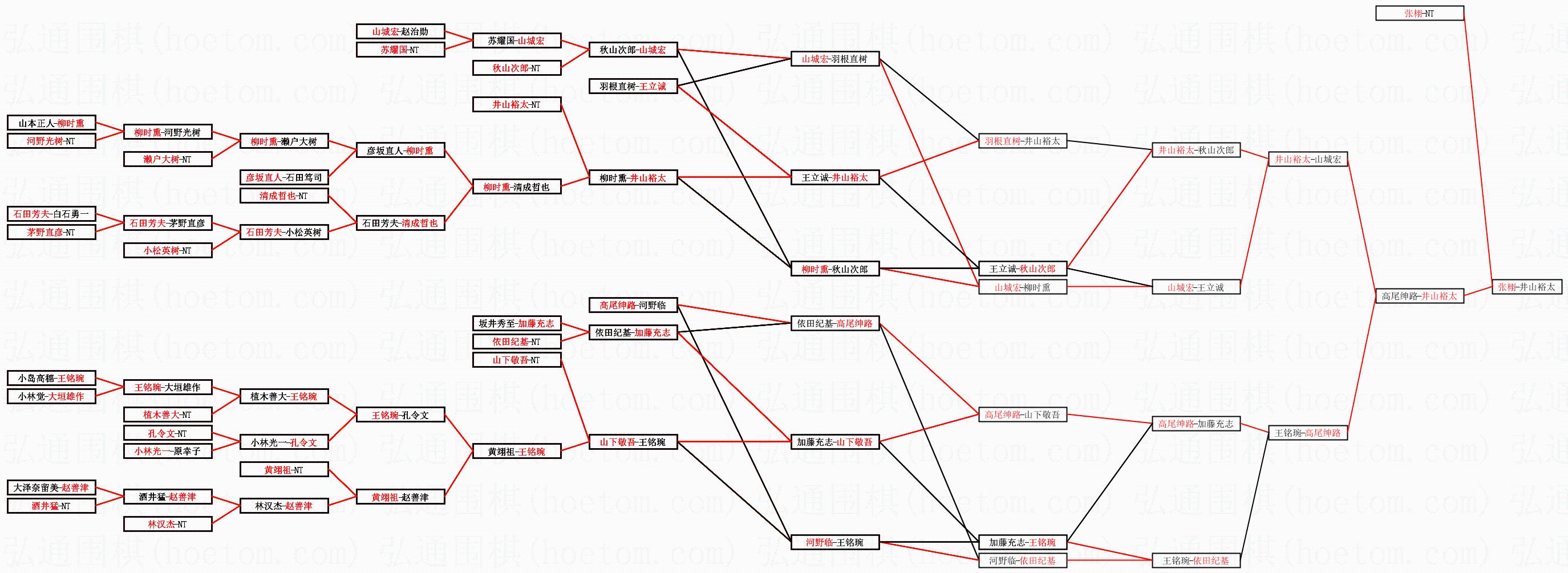 | 1.张栩获得冠军,井山裕太获得亚军。决赛比分:张栩4:2井山裕太。棋局: | ||