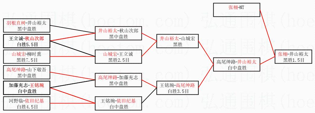 | 1.张栩获得冠军,井山裕太获得亚军。决赛比分:张栩4:2井山裕太。棋局: | ||