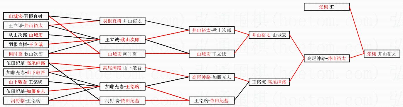 | 1.张栩获得冠军,井山裕太获得亚军。决赛比分:张栩4:2井山裕太。棋局: | ||