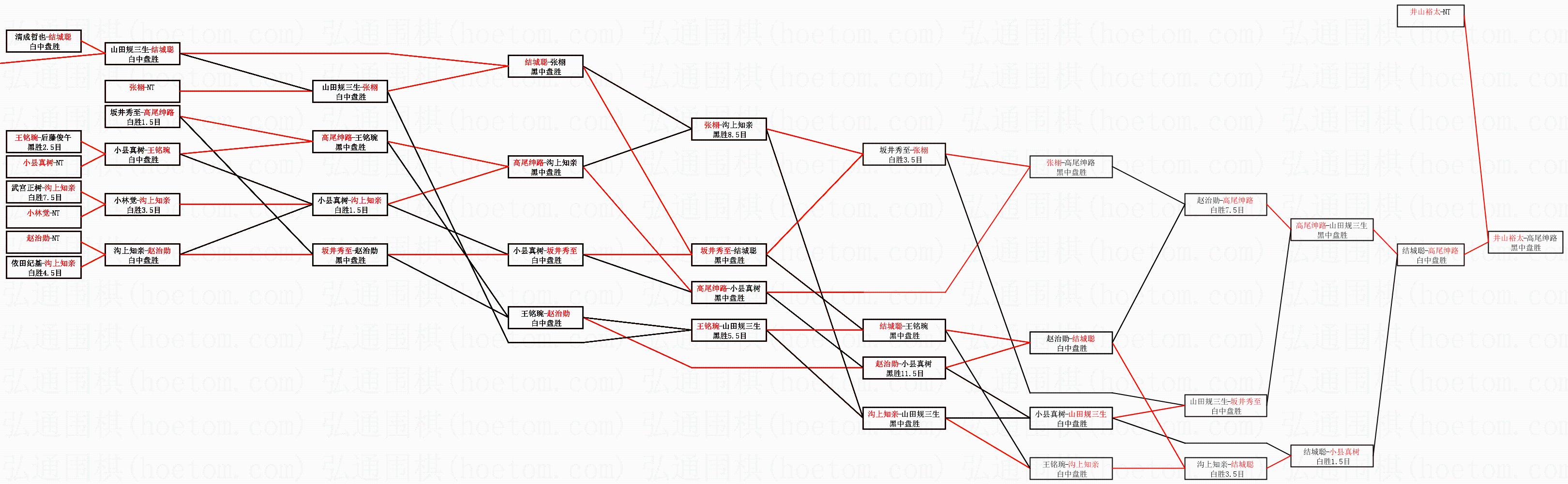 | 1.井山裕太获得冠军,高尾绅路获得亚军。决赛比分:井山裕太4:0高尾绅路。棋局: | ||