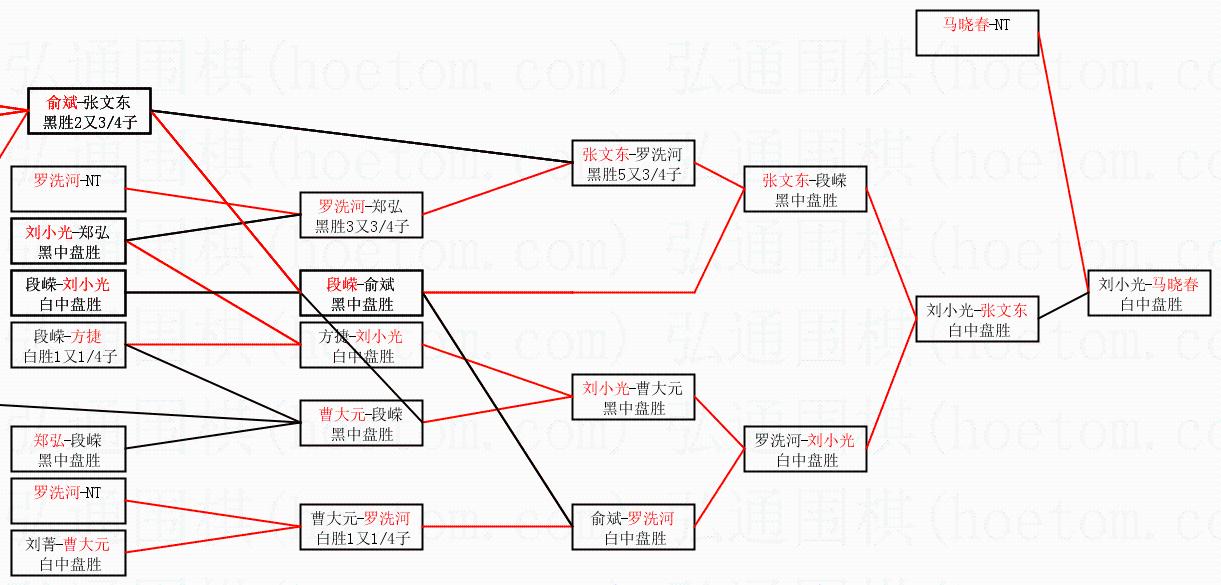 1.马晓春获得冠军,刘小光获得亚军。决赛比分:马晓春3:0刘小光。棋局: