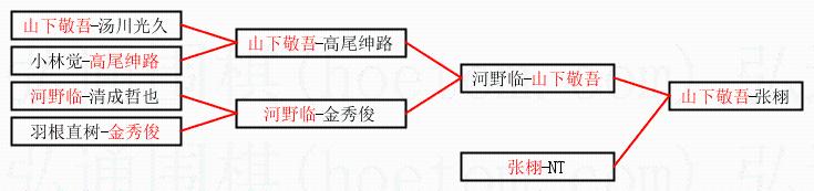 | 2.上半区半决赛山下敬吾获胜, 比分:山下敬吾 1:0 河野临。棋局: | ||