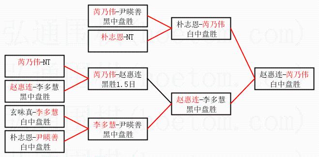 2.上半区半决赛芮乃伟获胜, 比分:芮乃伟 1:0 朴志恩。棋局: