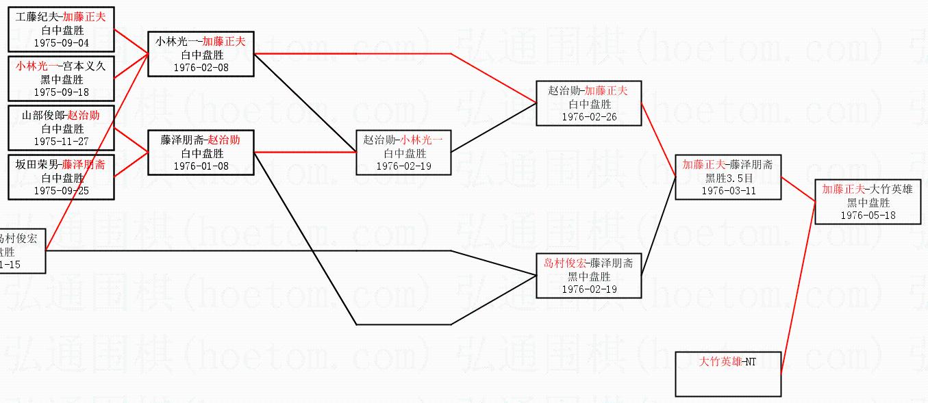 | 1.加藤正夫获得冠军,大竹英雄获得亚军。决赛比分:加藤正夫3:2大竹英雄。棋局: | ||