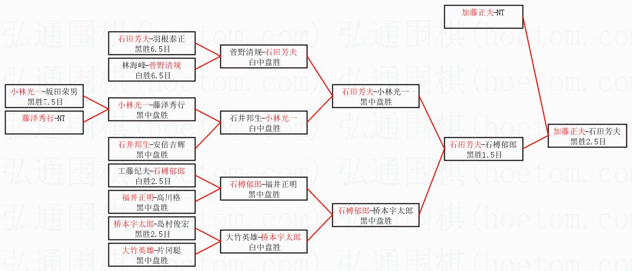 1.加藤正夫获得冠军,石田芳夫获得亚军。决赛比分:加藤正夫2:0石田芳夫。棋局: