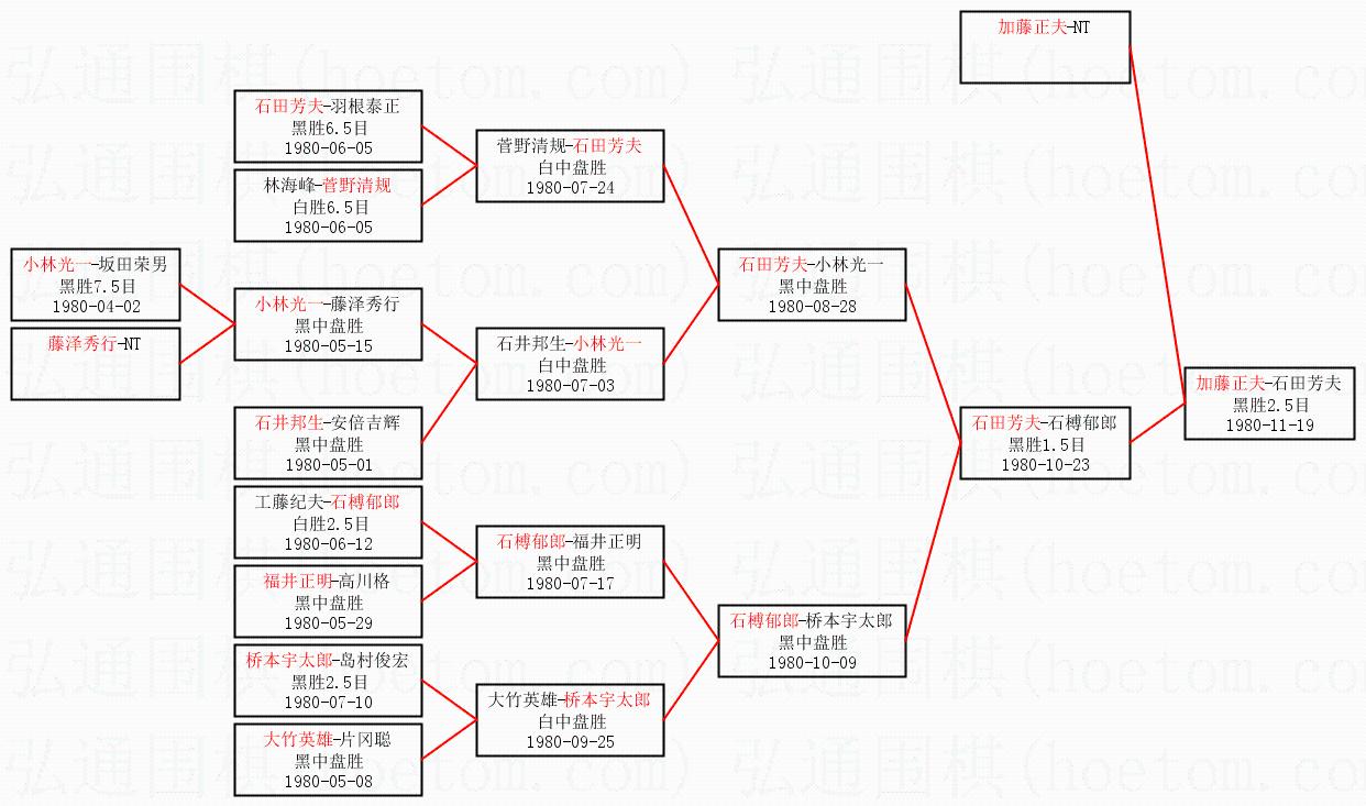 1.加藤正夫获得冠军,石田芳夫获得亚军。决赛比分:加藤正夫2:0石田芳夫。棋局: