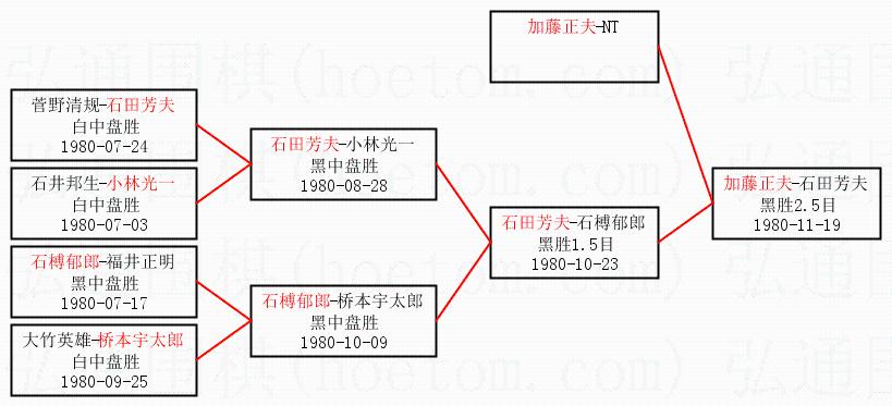 1.加藤正夫获得冠军,石田芳夫获得亚军。决赛比分:加藤正夫2:0石田芳夫。棋局: