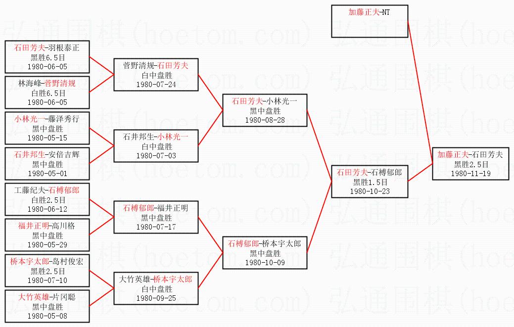 1.加藤正夫获得冠军,石田芳夫获得亚军。决赛比分:加藤正夫2:0石田芳夫。棋局: