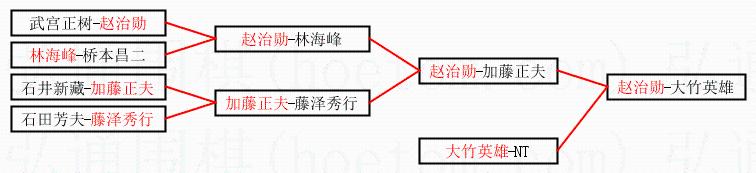 2.上半区半决赛赵治勋获胜, 比分:赵治勋 1:0 加藤正夫。棋局: